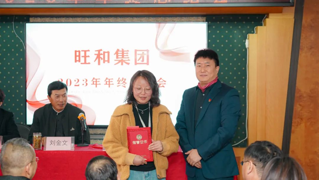 最后,公司创始人刘金文以及旺和招标总经理万勇表彰了考勤全勤员工李晶,并为她颁发了全勤荣誉证书和奖金。